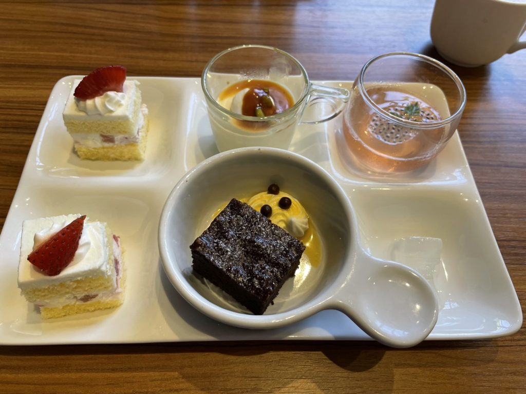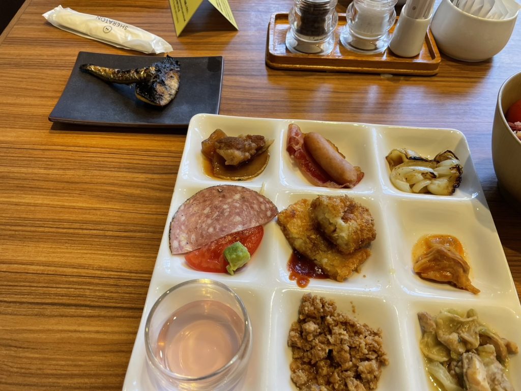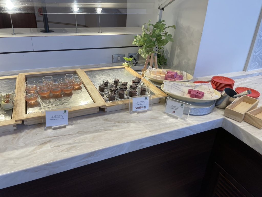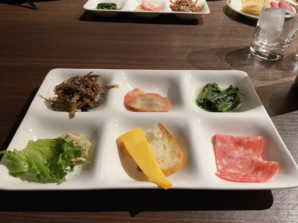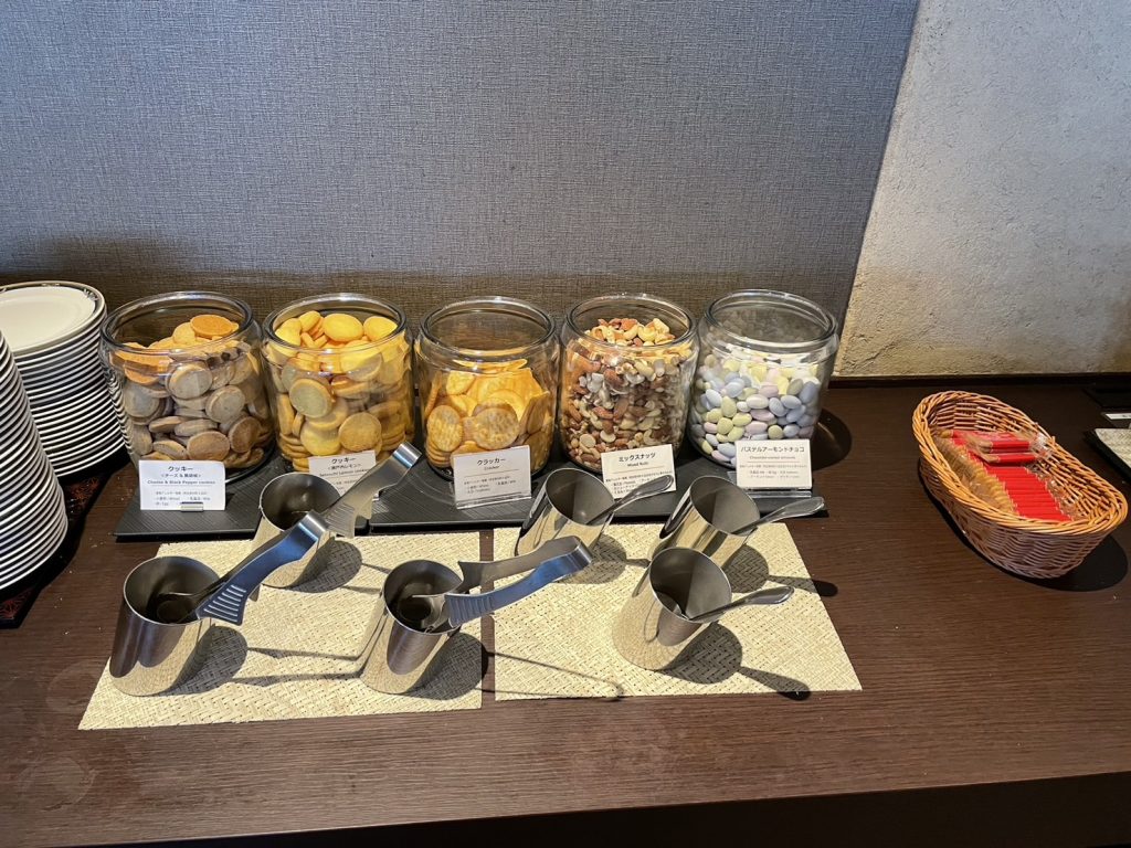 クラブラウンジでは、時間内であればソフトドリンク類やコーヒー、ちょっとしたおやつが楽しめました。また、トワイライトサービスにはお酒の提供と、オードブルプレートのおつまみのようなものを提供いただきました。遅めのお昼だったのでちょうど良い量でしたが、もし夜をしっかり食べたい方にはちょっと物足りないかもしれないですね。