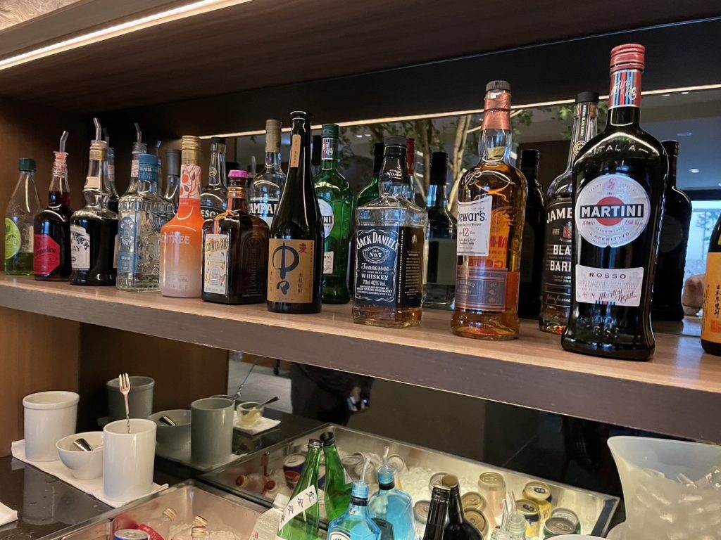 夕方には、ビールやワイン、カクテルなど、アルコール類がフリーフローで楽しめます。夜景を眺めながら、ゆったりと過ごせる空間は、まさに至福の時間です。