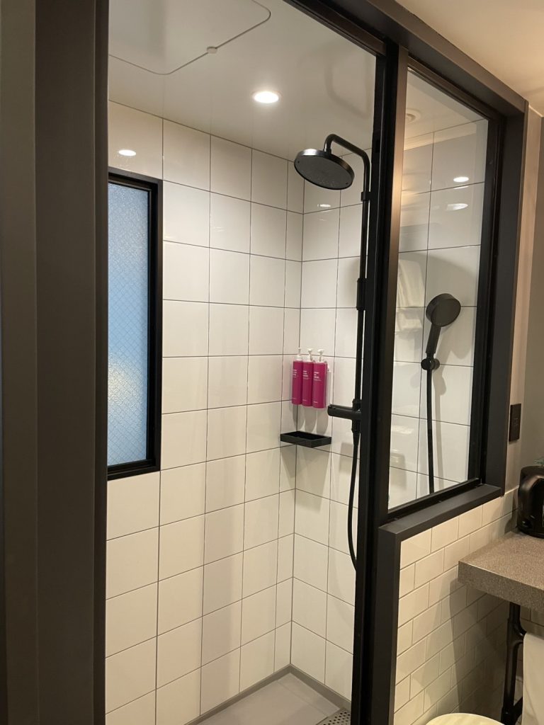バスタブはないですが、レインシャワーの水圧も十分で気持ちいいです。