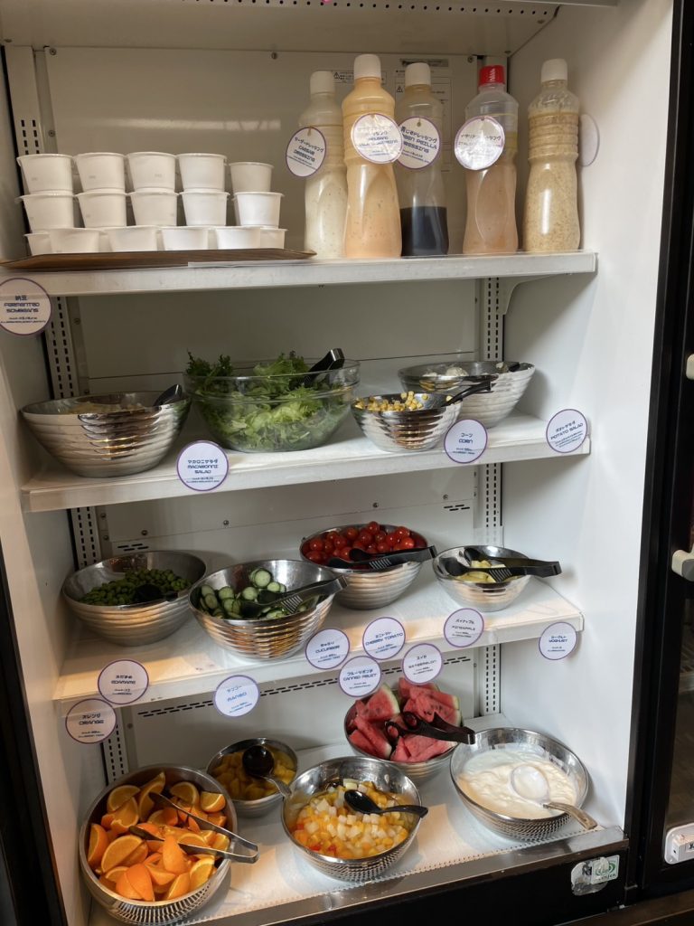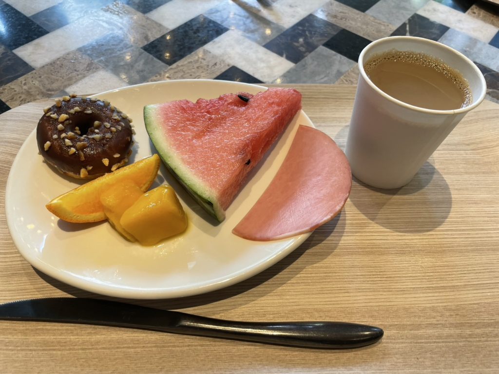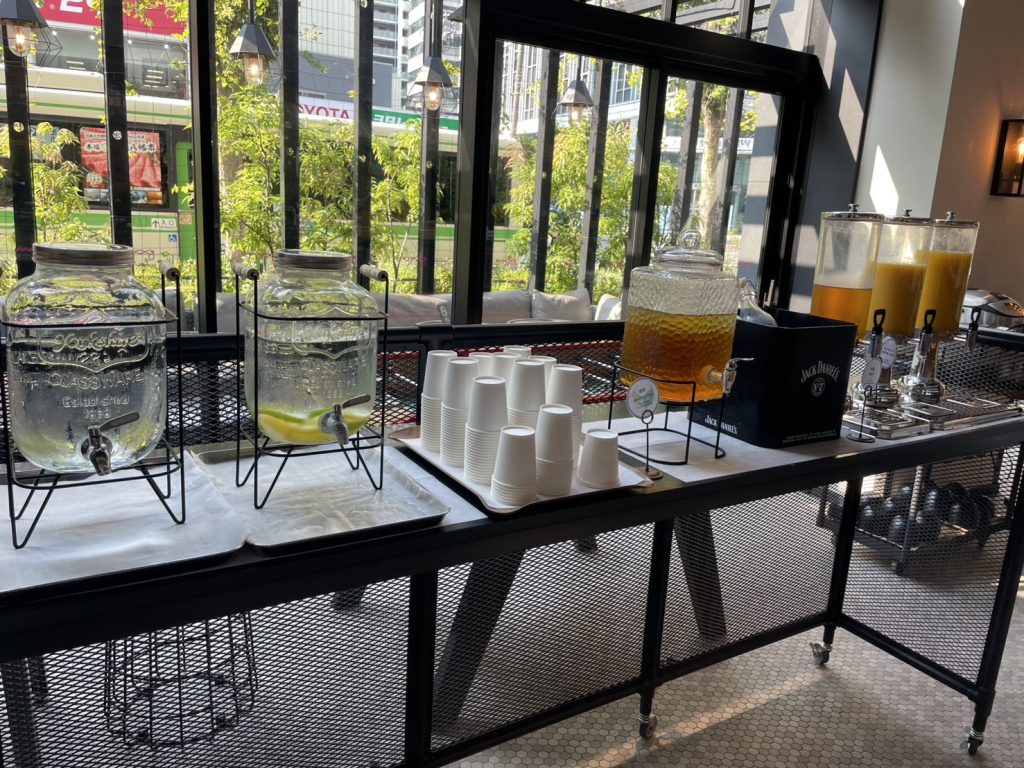 また、プラチナ会員だとソフトドリンクがいつでも自由に飲めるようです。受付の方に声をかけるとソフトドリンクメニューの中から好きなものを選べます。テイクアウトカップに入れてもらって部屋に持ち帰ってゆっくりすることもできます。無料のドリンクとは別に、1杯選べるドリンク(アルコールやコーヒーもありました)もありました。