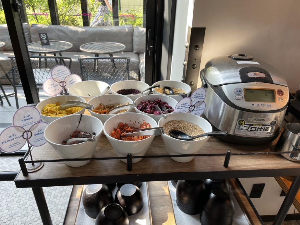 マリオットボンヴォイのプラチナ会員として、朝食とソフトドリンクを無料でいただくことができました。朝食は、種類は多くないものの、どれも美味しく、朝から活力が湧きました。特に自分でトッピングをするお茶漬けが気に入りました!