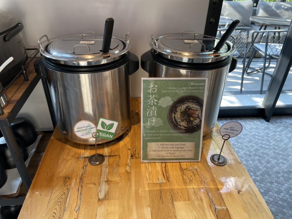 こちらがお茶漬けです。お茶漬け用の出汁と、トッピングも種類が豊富で好きにアレンジができます。