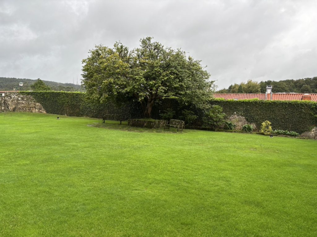 サンティアゴ・デ・コンポステーラ空港からホテルまでは、タクシーで約20分。ホテルの場所は、旧市街の中心部からは少し離れていますが、静かな環境で、緑豊かな庭園に囲まれています。