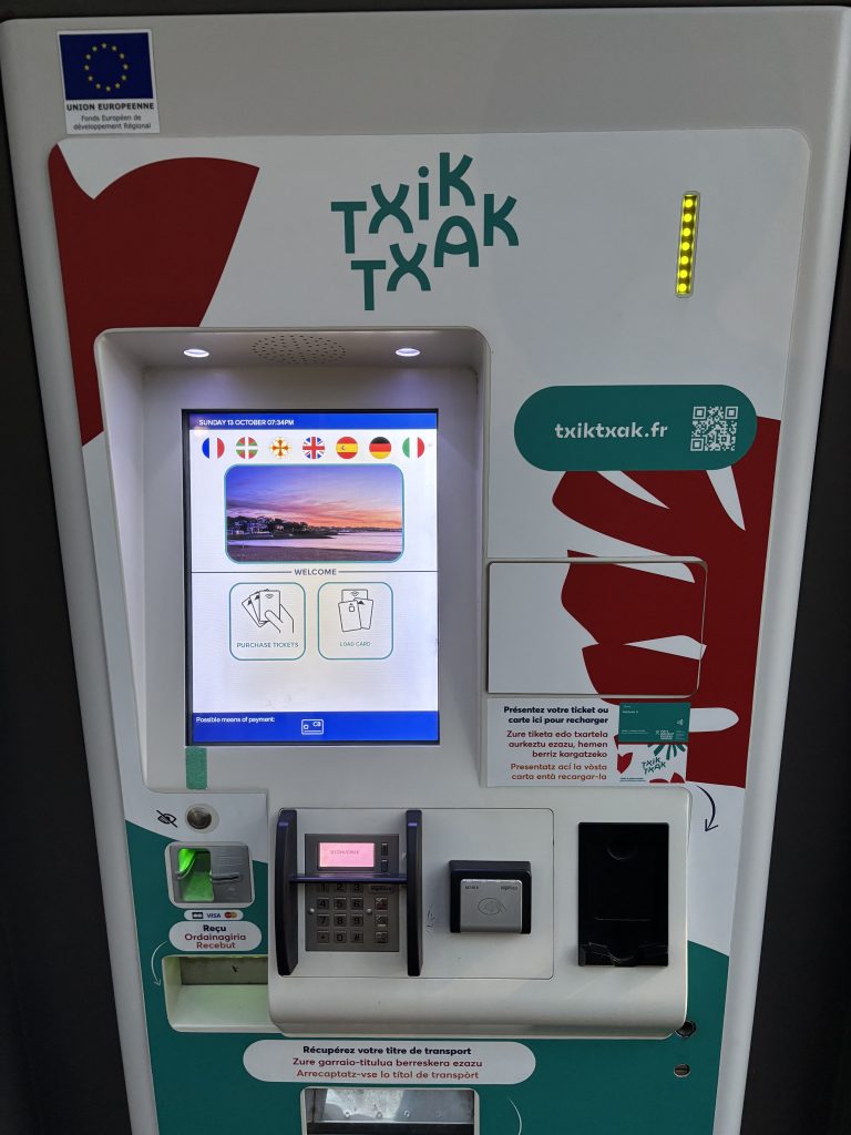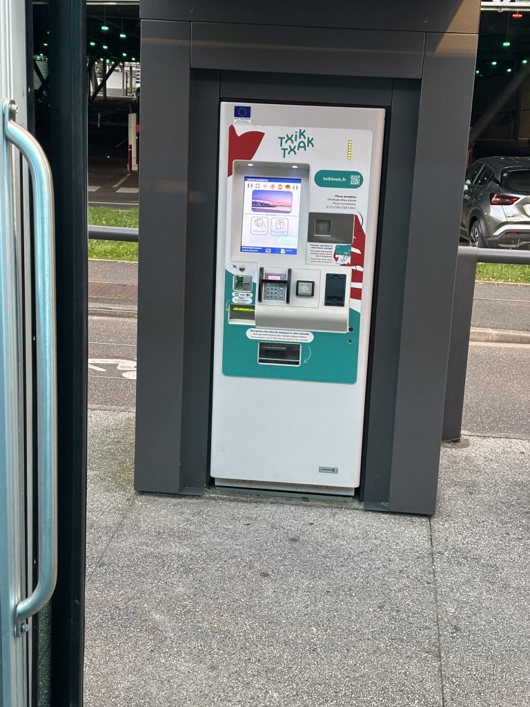 こちらが券売機です。同じバス停でも、例えば自分の行き先側のバス停に券売機がなくても、反対方向に向かうバス停(つまり道路を挟んで反対側のバス停)に券売機があったりすることもあったので見つからない場合は探してみてください。ただ、先ほど紹介したようにバス内でクレジットカード決済でもいけたので、券売機が見つからなくても何とかなりました。