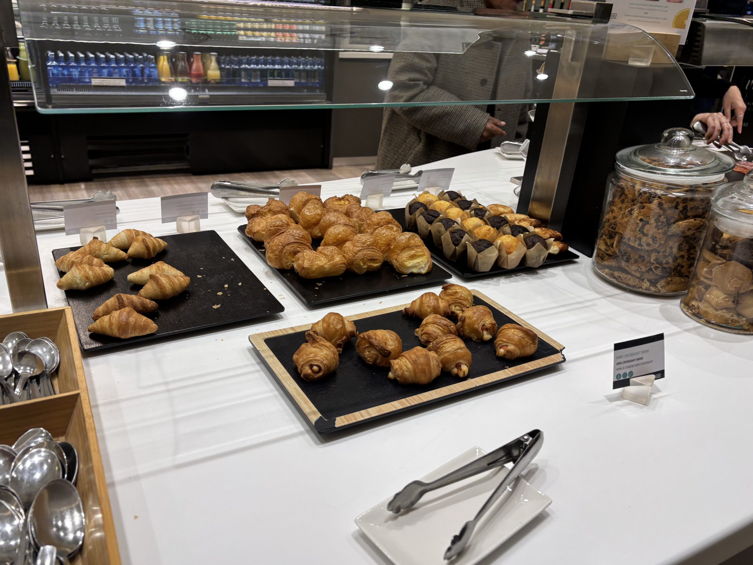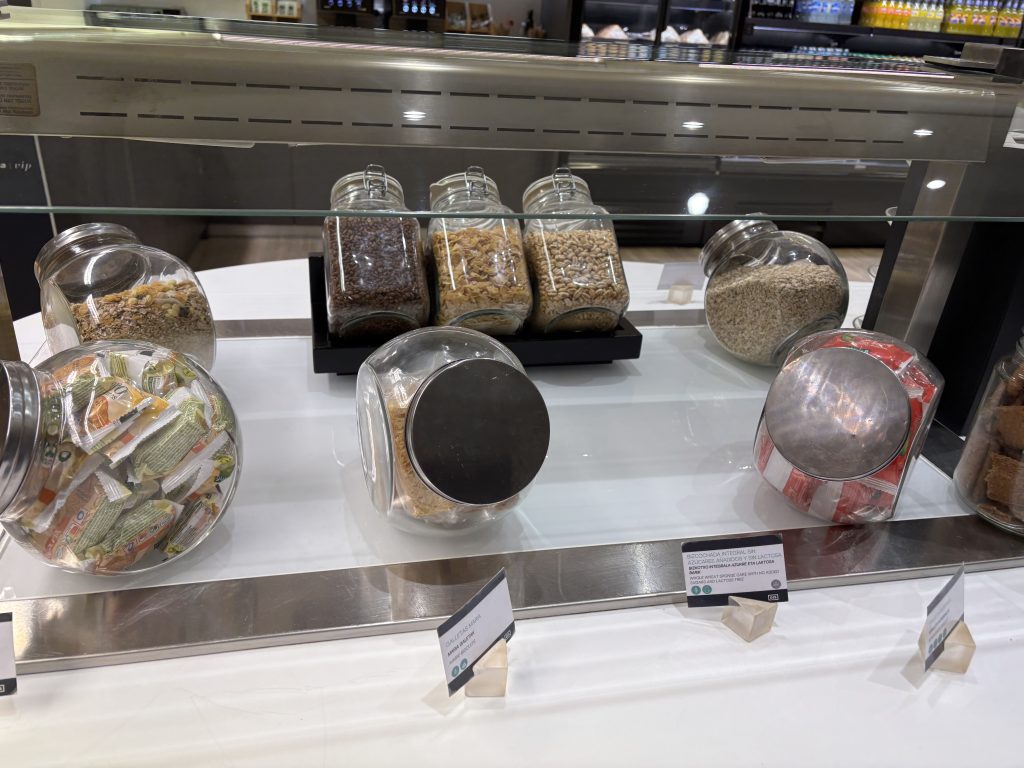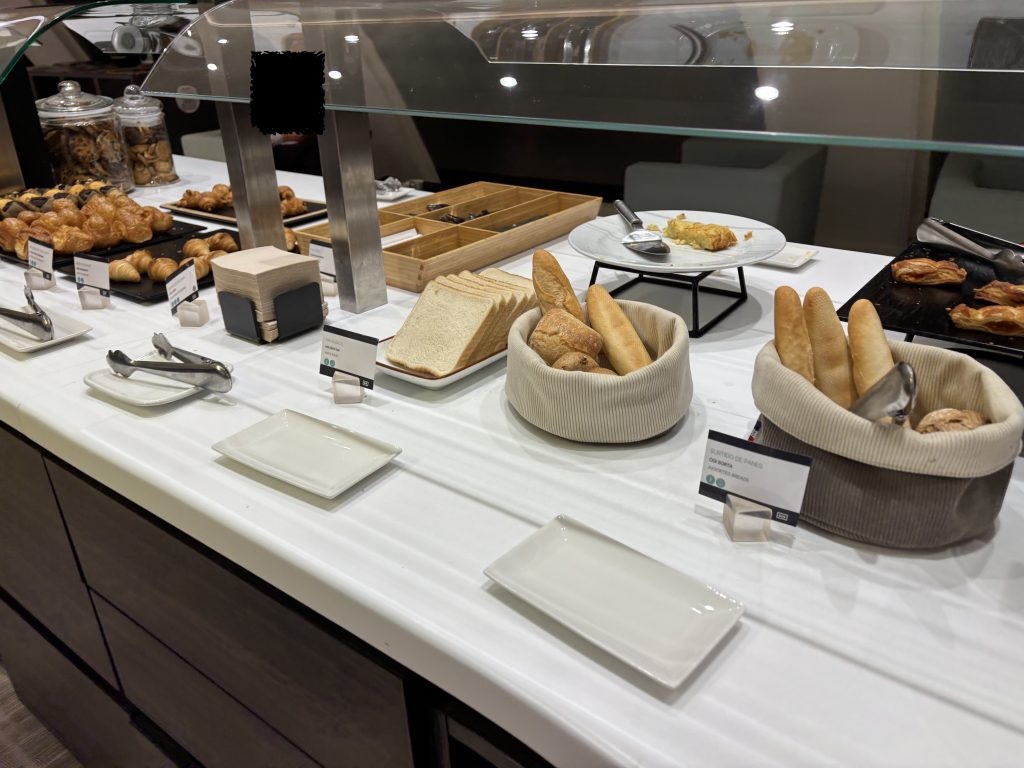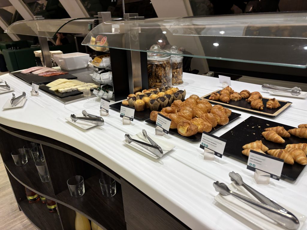 利用したのが午前6時過ぎのため、朝食に最適なパンやコールドミールが中心でした。他の時間帯の内容までは分からないのですが、朝でも豊富な種類に大満足の内容でした!本当はもっとゆっくり過ごしたかったですが、飛行機に乗り遅れては元も子もないので軽くお食事をしてラウンジを後にしました。