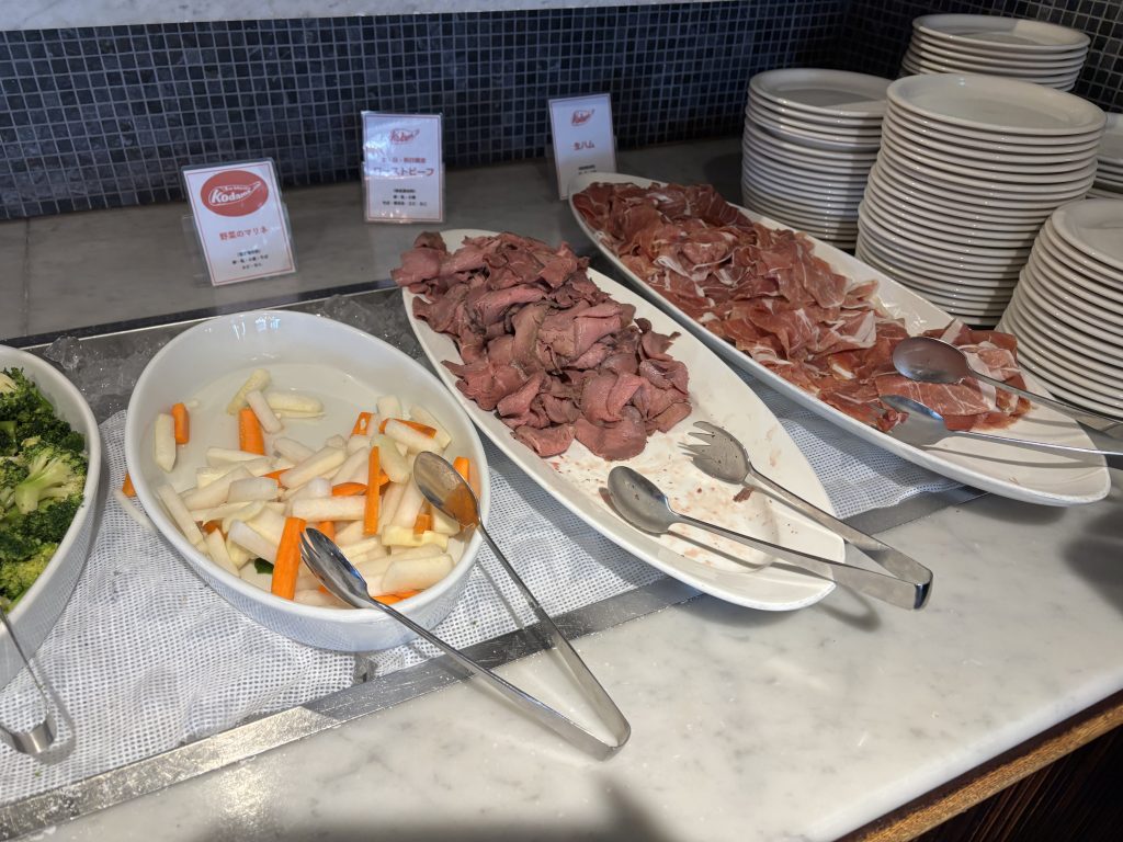 こちらが生ハムとローストビーフです。好きなだけとってもいいんですよ。
