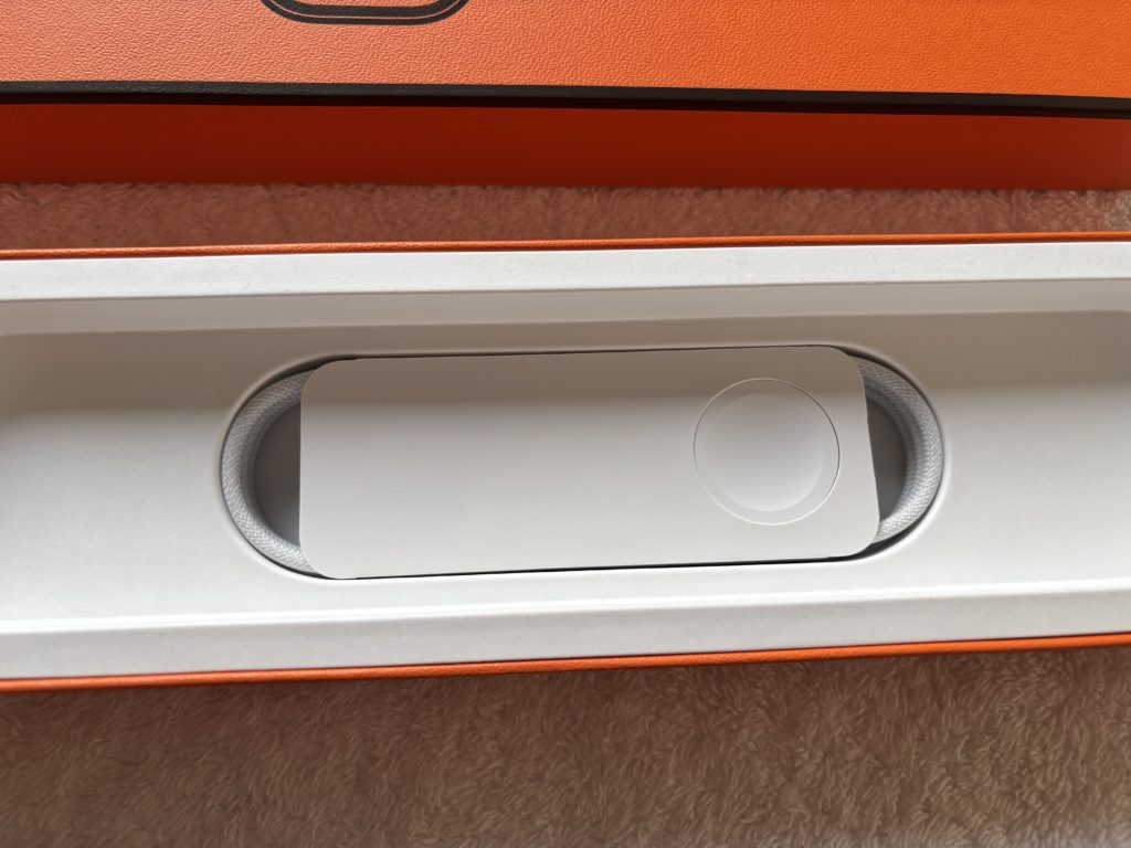 開封しオレンジ色の箱を見た瞬間、心臓が大きく高鳴ったのを覚えています。エルメスを象徴するオレンジ色の化粧箱。ずっしりとした重みと、そこに込められたエルメスの世界観が、箱を持った指先から伝わってくるようでした。