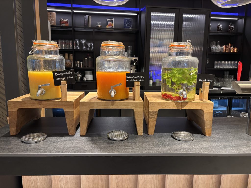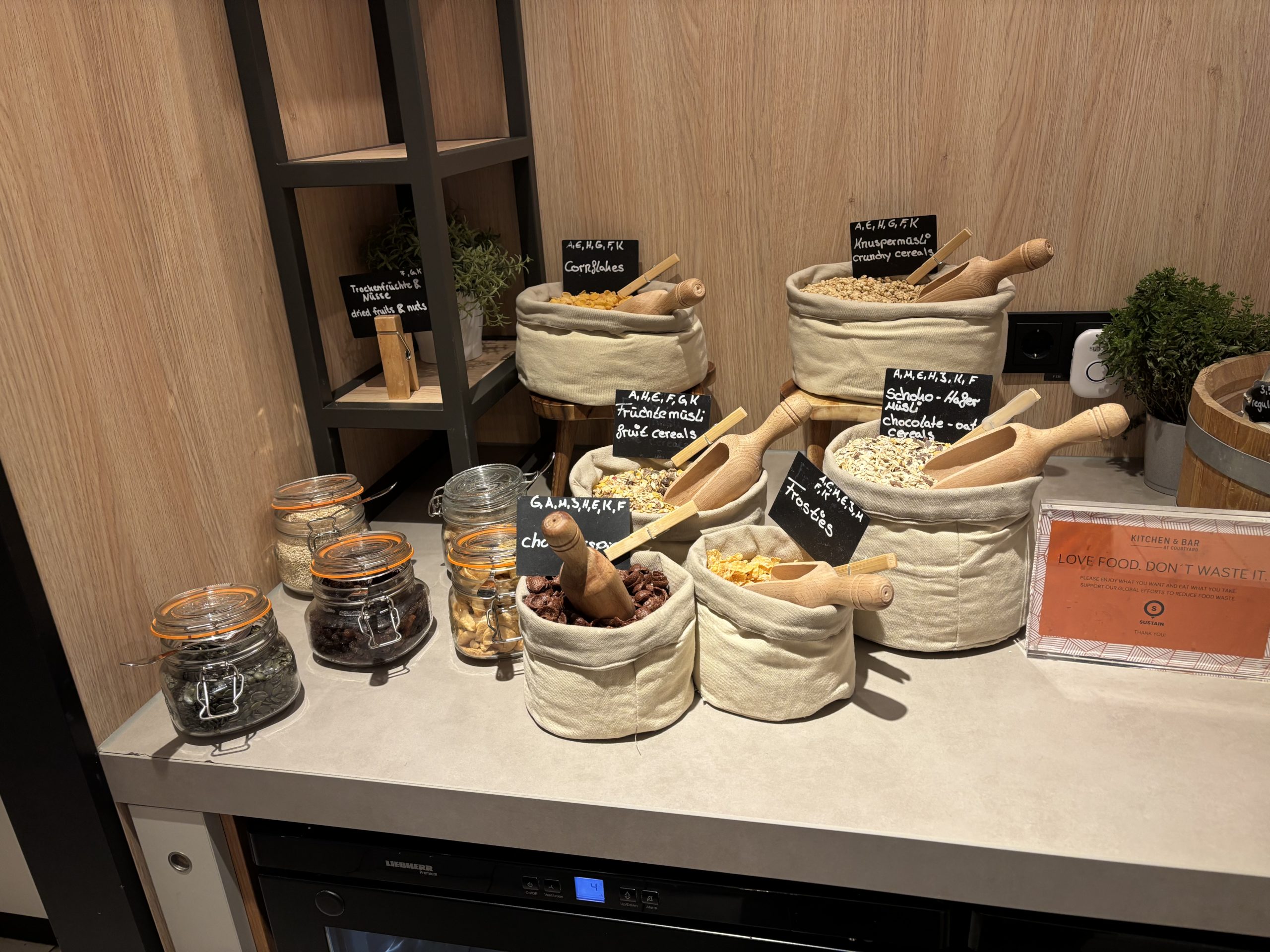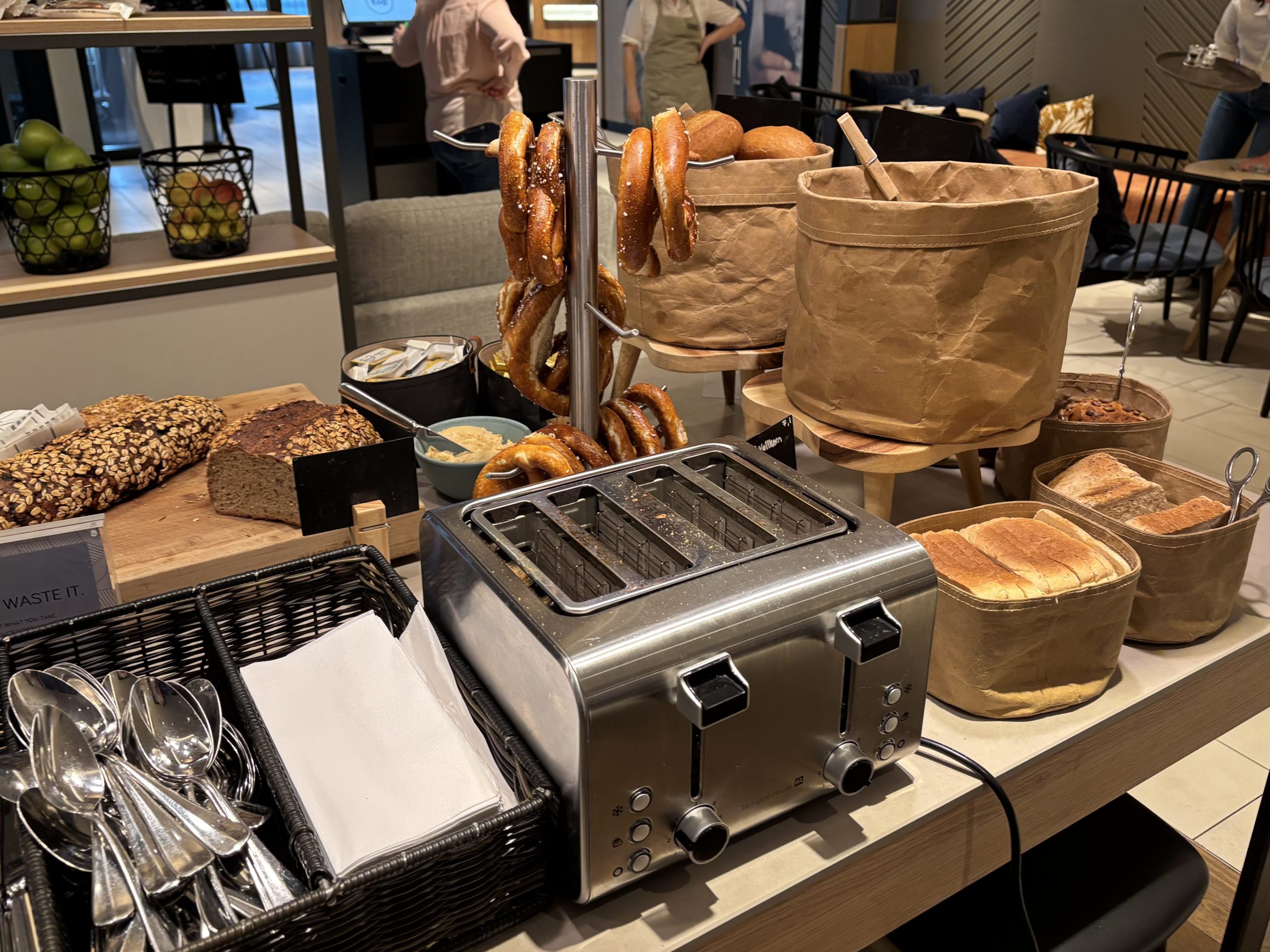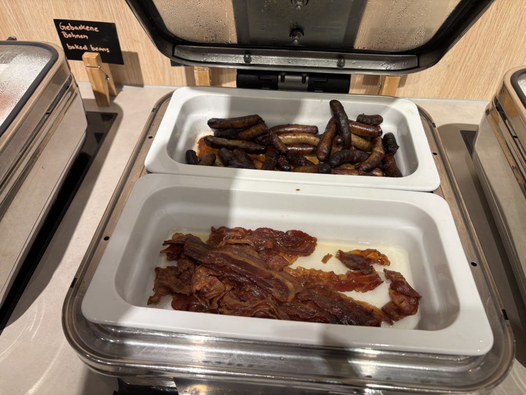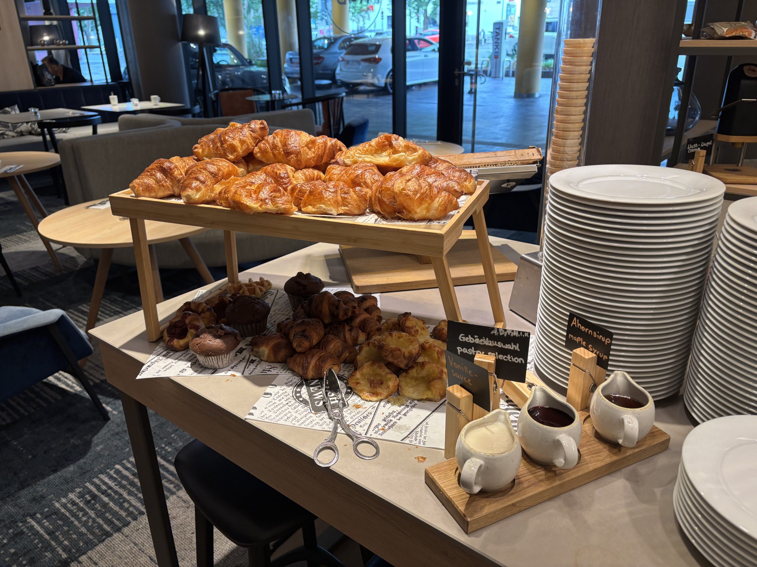 レストラン「K&B」で提供されるビュッフェ形式の朝食は、種類が豊富でどれも美味しそうでした。温かい料理はもちろん、ハムやチーズ、フレッシュなフルーツやヨーグルト、そしてドイツパンのラインナップが充実しており、目移りしてしまいます。