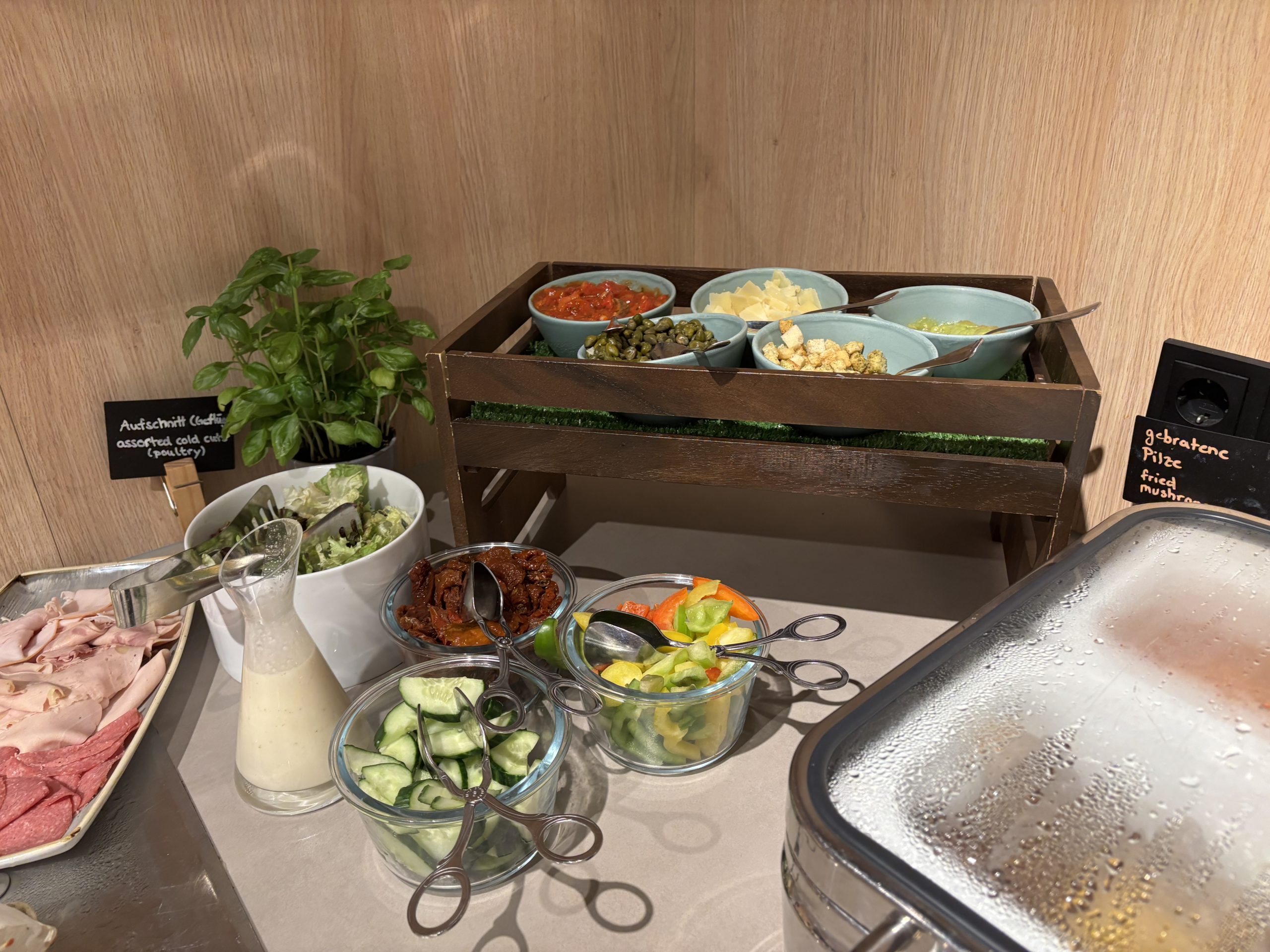 まずはパンコーナーです。種類豊富ですね!ちょっと見えづらいですが、下の段にあるチョコマフィンが絶品でした!ドイツはパンが美味しいですね。