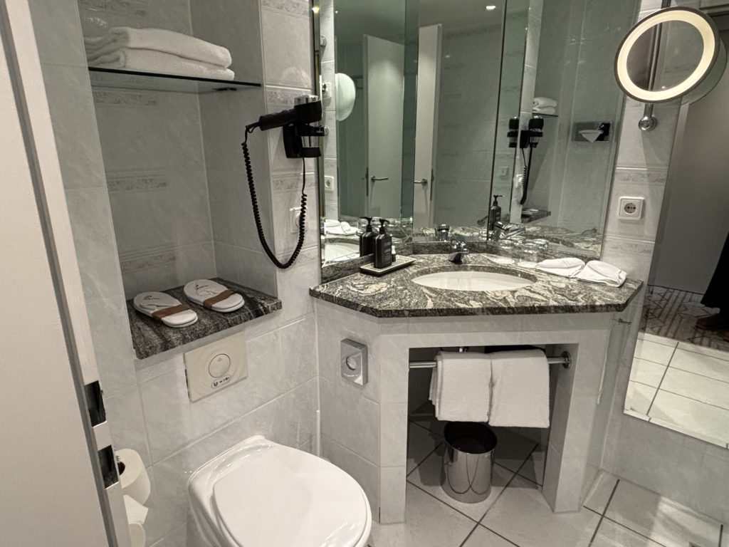 バスルームです。ドイツは洗面台の高さが高いですね(笑)みなさん背が高いのでしょうか…。