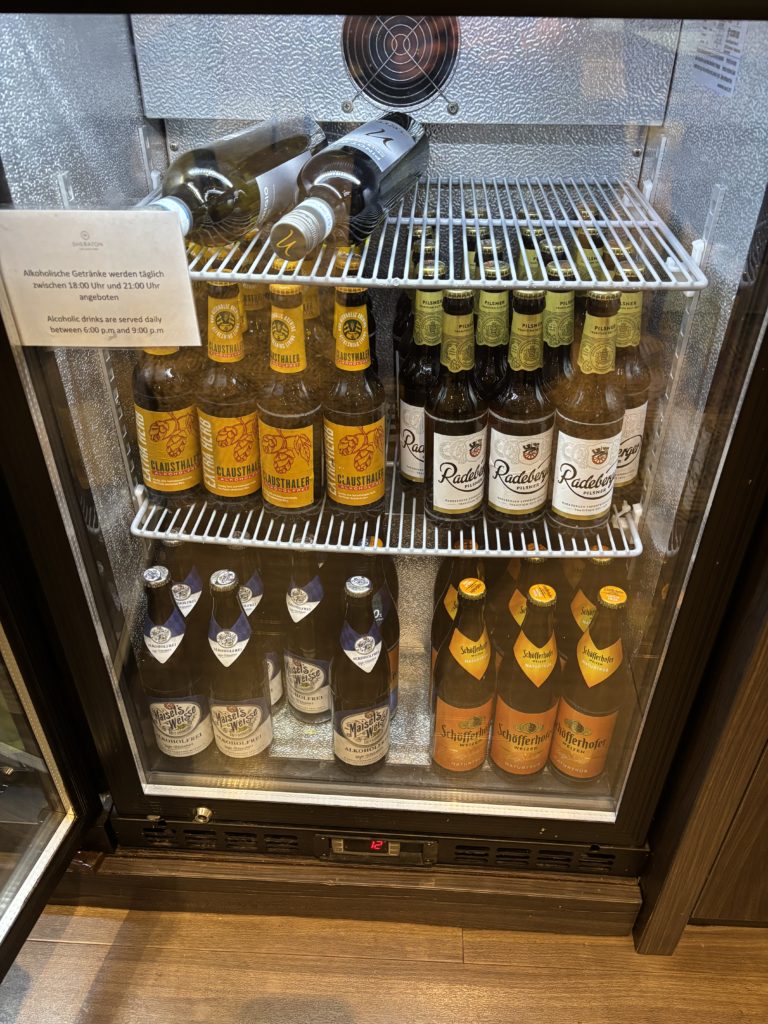 ドリンクです。ドイツらしく、瓶ビール?が数種類ありました。(お酒を飲まないので、種類が全然わからないですが、、多分お酒だと思います)
