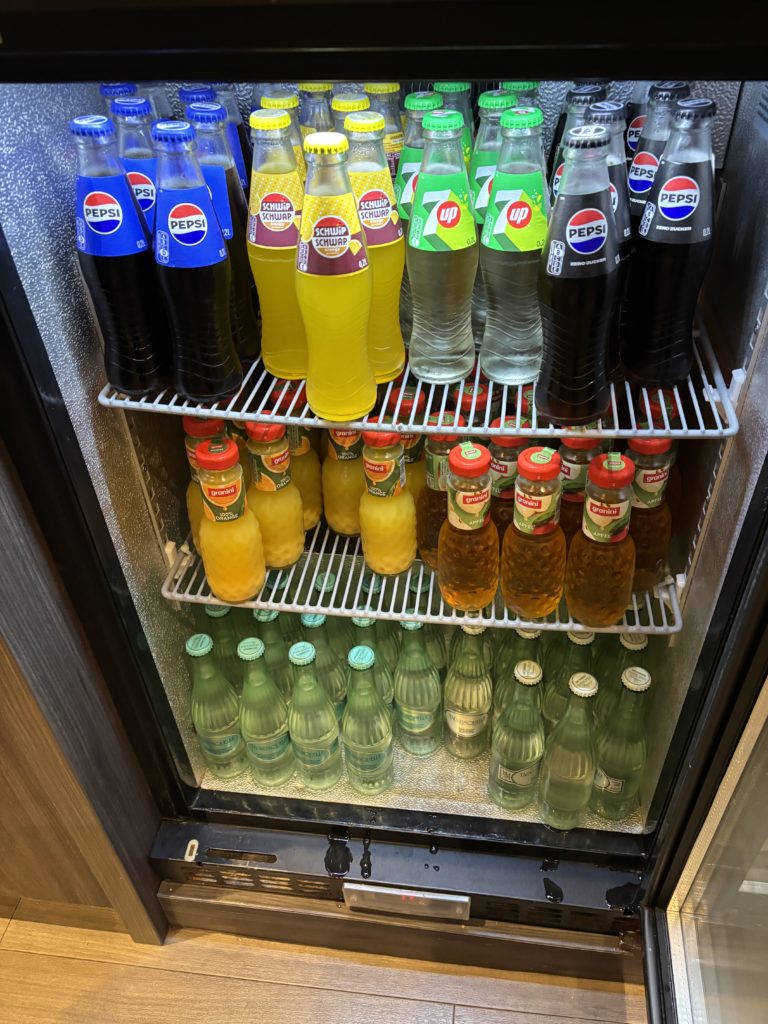 ソフトドリンクも豊富にありました。瓶で置いてあるのはちょっと珍しい気もしますね。よく冷えていて美味しかったです。